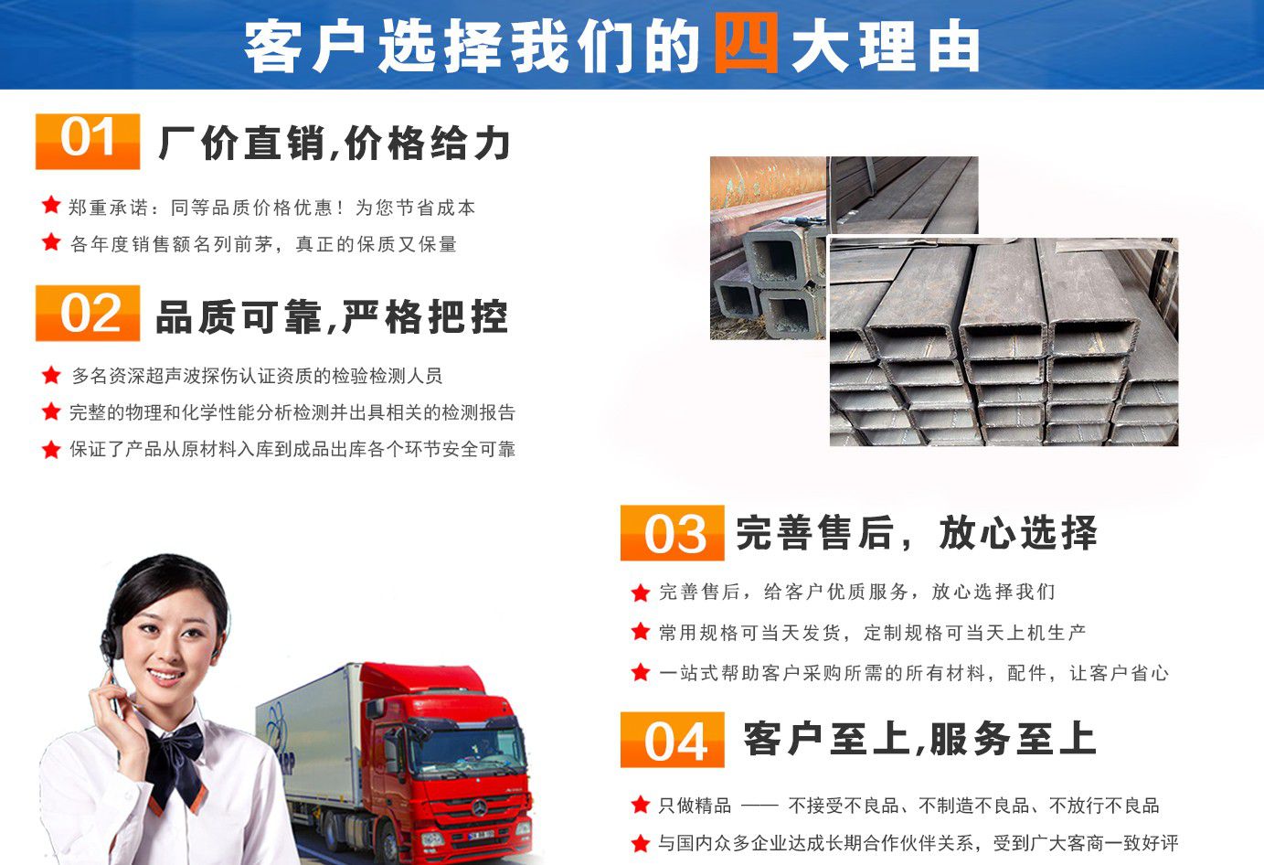 無錫盛灝特鋼有限公司長期銷售Q355B方矩管,鍍鋅方矩管,大口徑方矩管,厚壁方矩管,無縫方矩管等各種方管產品!產品廣泛應用于鋼結構建筑(鋼管混凝土、管樁、管桁架,橋梁、海上作業平臺、港口碼頭建設、電視通訊鐵塔、電力鐵塔等鋼結構管)。壓力管道(石油、天然氣、煤漿等輸送)、機械制輥等領域?! 」咀詣撧k以來,一直堅持“誠信合作,共同發展”的經營理念?! ∫恢币詠砦覀儽局耙哉\相待,以信為本,互利互惠,共同發展”的長期方針,充分發揮現貨資源優勢為您提供“可靠的產品、過硬的質量、完善的服務”,歡迎廣大新老客戶前來洽談業務?! 」疽浴爸琳\至信,雙利雙贏”為根本宗旨,堅持科技興企的發展策略,恪守商規,創新進去,贏得聲譽,贏得了市場,得到了社會各階層的認可。公司以雄厚的實力、可靠的質量、儲存鋼管門類齊全、庫存量大之優勢,本著守法、守信、創新的理念,打造精品,發展鋼管多元化品種,滿足客戶各種需求,以低廉的價格、熱情的服務面向國內外客戶,歡迎鋼管界同仁加盟!我們為客戶提供周到的服務 !  公司為客戶提供以下服務  服務三保: 保證質量、保證時間、保證數量?! 》兆谥迹?雄厚的實力、優質的產品、低廉的價格、周到的服務。  批零兼營,一支起定。...